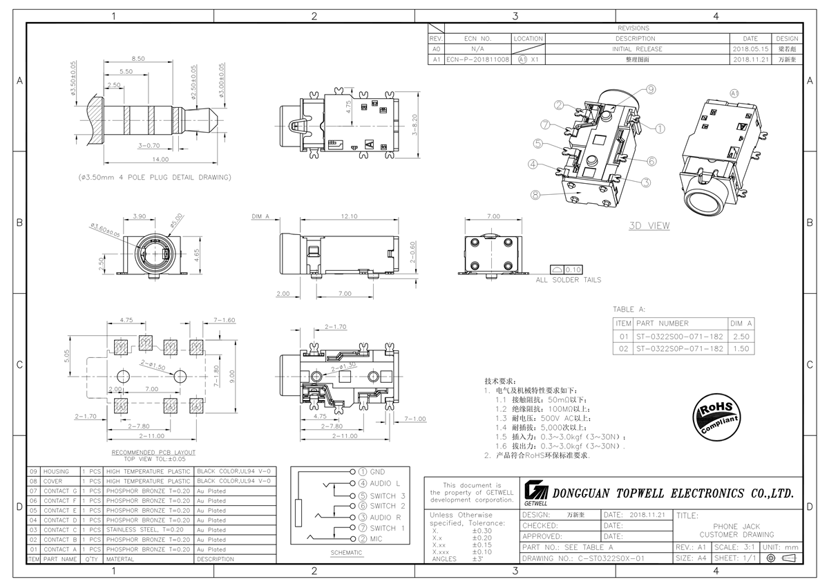 普通耳机插座 ST-0322S00-071-182